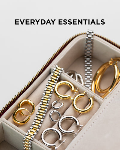 We pride ourselves on making jewelry youβll never want to take off because we know the right hoop looks just as great in a dressed down casual setting as it does at a black tie event. This collection features super versatile jewels that go with everything. Plus, all our jewels are 14k gold plated which means they are waterproof and wonβt tarnish so you can wear your favorites pretty much anywhere.